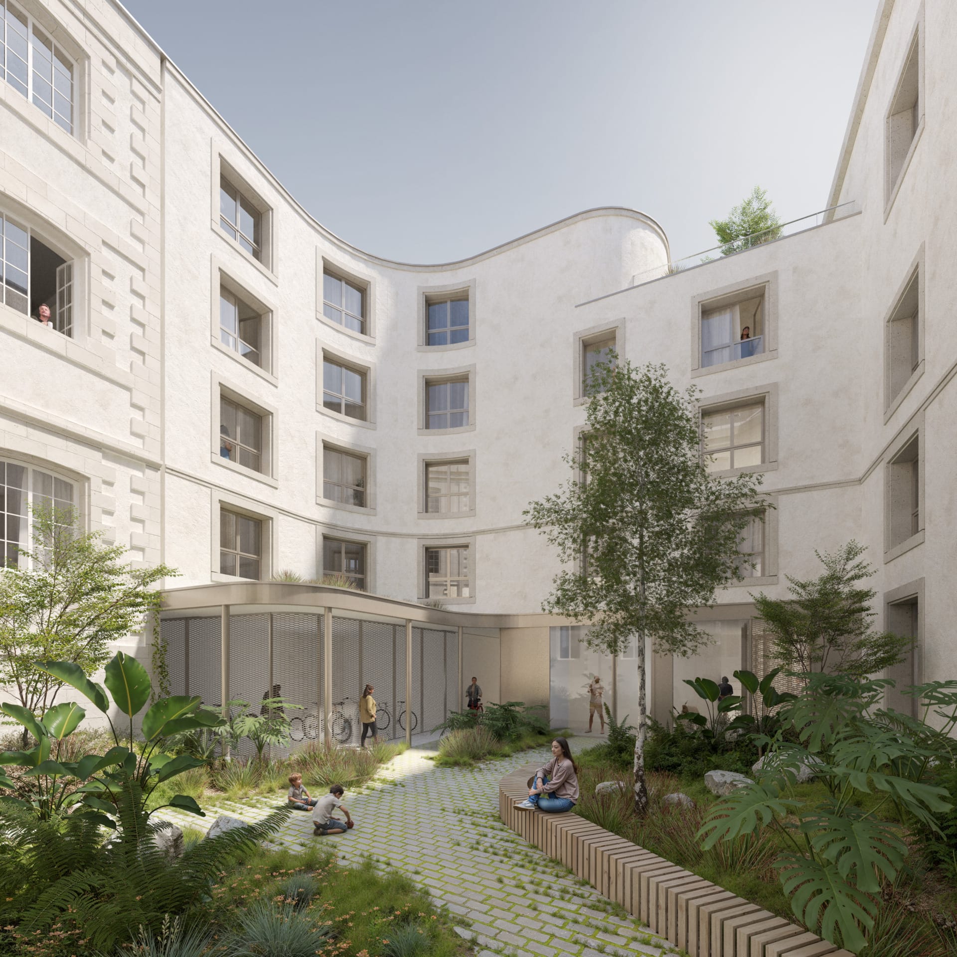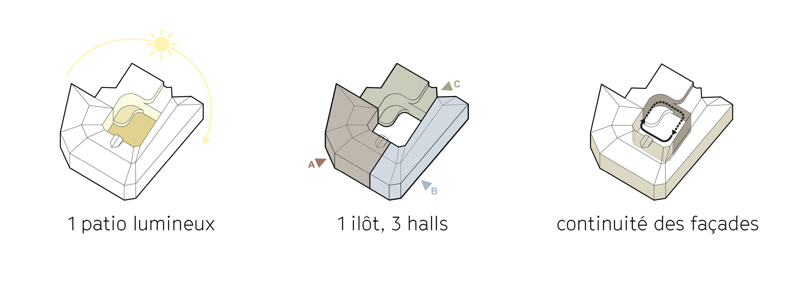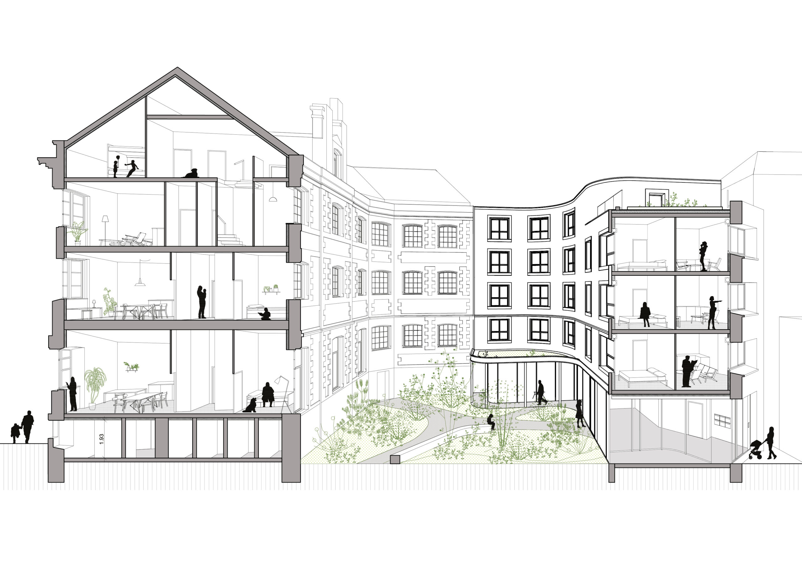 Démolition partielle de l’immeuble central et reconversion du bâti ancien remarquable