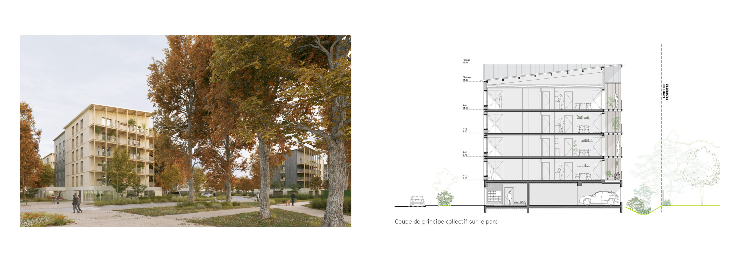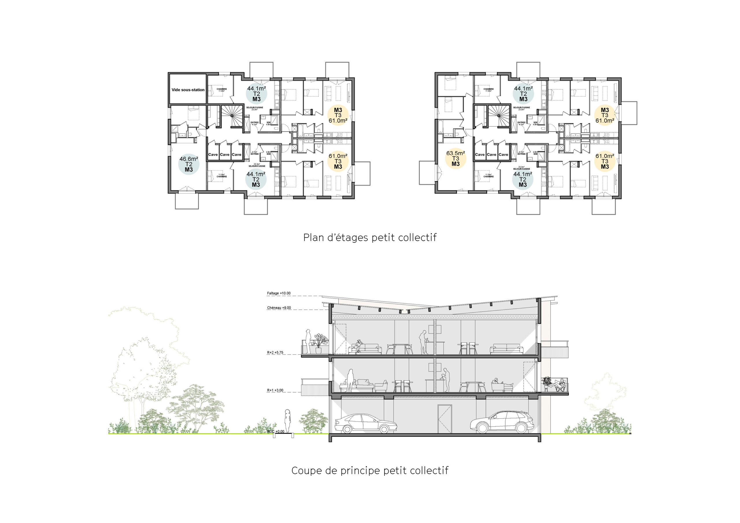 Biosourcé niveau 3 (béton décarboné, FOB isolant paille, plancher, poteaux, poutre bois)